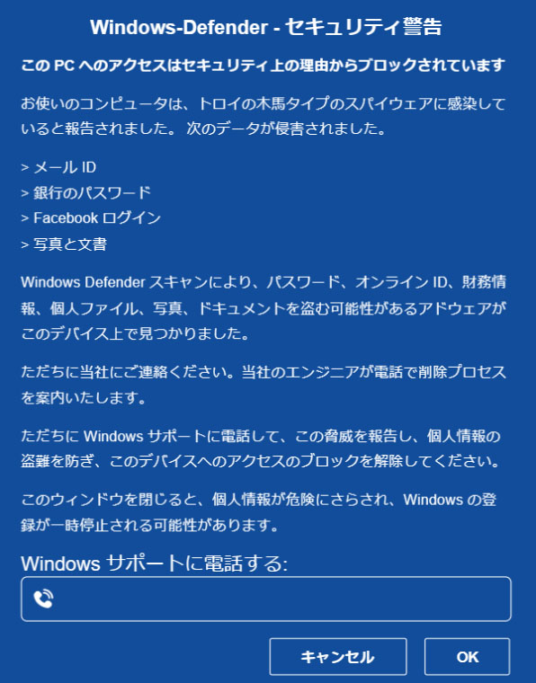 すぐに当社にご連絡く さい。当社のエンジニアが電話で削除プロセスを案内いたします。お使いのコンピュータは無効になっています。Windows Defender SmartScreen により、認識されないアプリケーションの表示が防止されました。 このアプリケーションを実行すると、コンピュータが安全でない可能性があります。 Windows サポートに電話する: (日本国内無料電話)